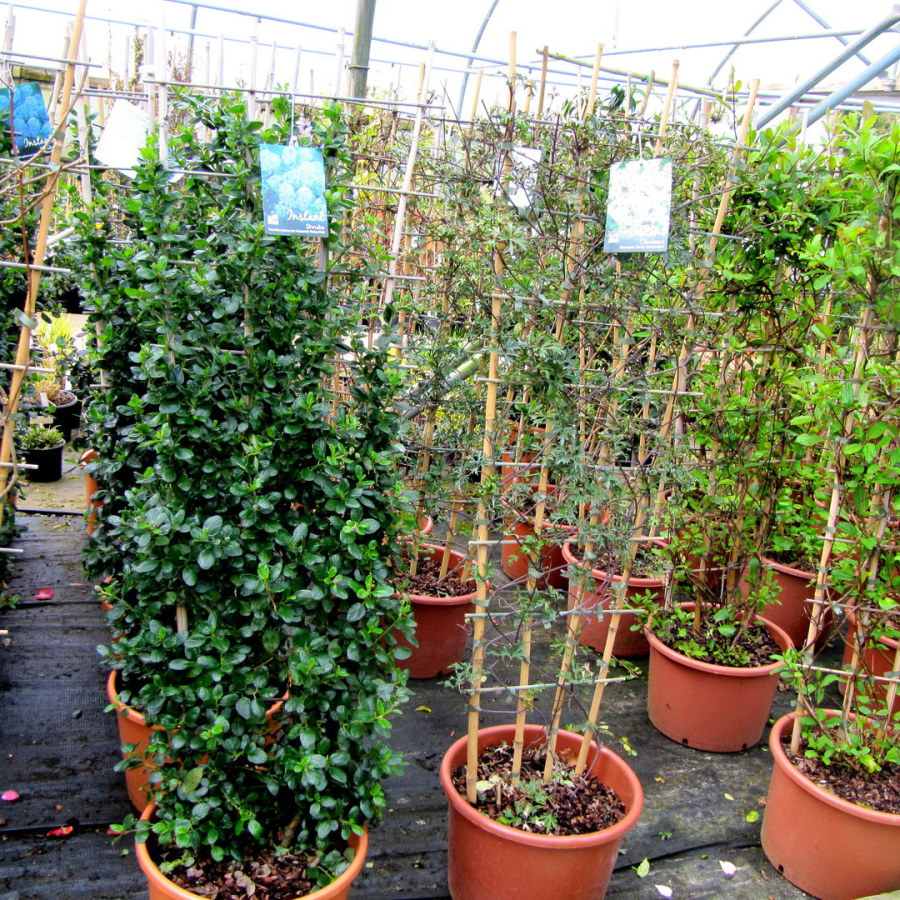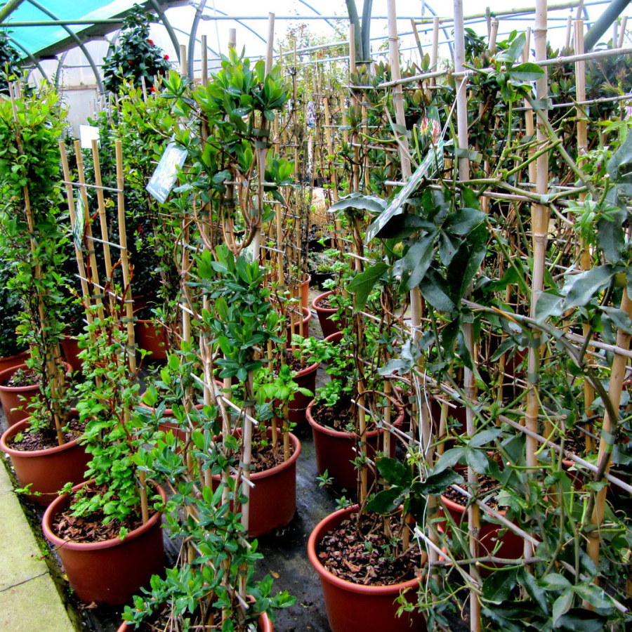 Climbers take up very little ground area and are used to cover fences,walls or unsightly features,plants such as Clematis,Rosa, Wisteria and Honeysuckle are the most popular. Plants suitable for a sunny aspect include: Trachelospermum,Ceanothus,Clematis and Wisteria, plants for a shady position include: Parthenocissus,Hydrangea petiolaris,Garrya elliptica 'James Roof' and certain varieties of roses such as Rosa Alberic Barber'. Regular pruning keeps climbers attractive,tidy and floriferous. Prices from £5.50.